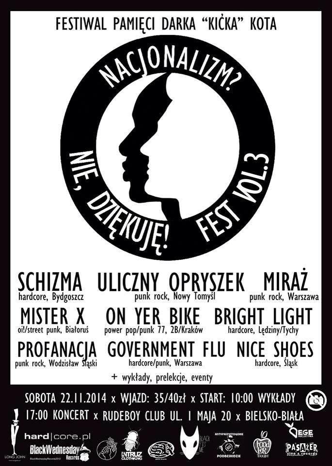 „Nacjonalizm?- NIE, DZIĘKUJĘ!” FEST vol. 3- SCHIZMA + ULICZNY OPRYSZEK+PROFANACJA +GOVERNMENT FLU+MIRAŻ+BRIGHT LIGHT+ OYB+MISTERX